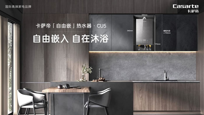 而获奖的致境自由嵌燃气热水器·CU5采用第四代小体积设计,能完美嵌入700mm内径的橱柜,通过“藏”进橱柜释放更多空间。另外,其双层全密闭稳燃结构能实现室外取氧、排气,适合安装在开放式厨房、浴室、阳台等多个场景。除此之外,热水器还搭载原创瀑布洗科技能让水量增至170%,享受畅快沐浴。