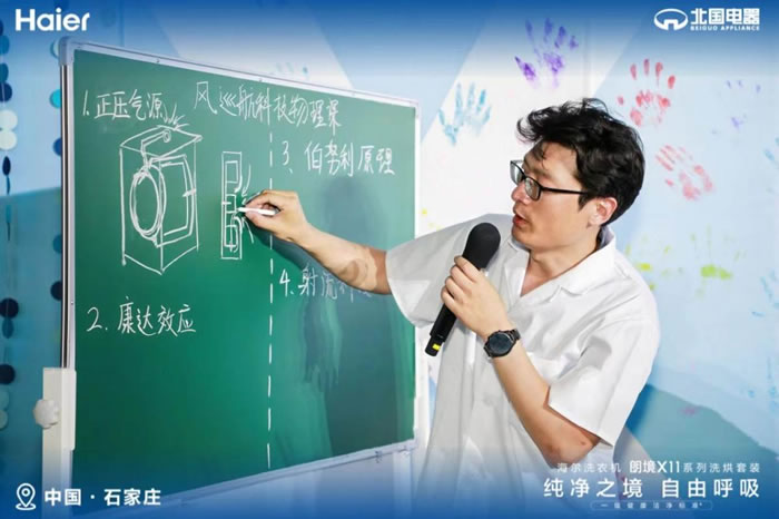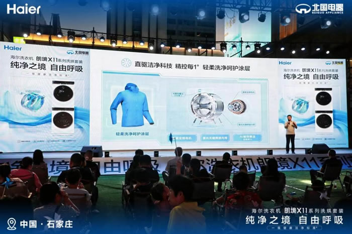 6月15日,在“穿行四季·逐风季”石家庄站活动现场,海尔洗衣机上市“会呼吸”的朗境X11系列新品,有效解决了洗衣机潮湿异味的难题。