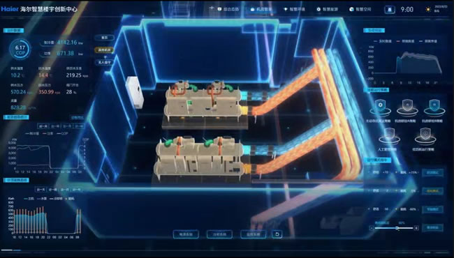 在海尔生态创新中心项目中,海尔智慧楼宇不仅应用了高效节能的磁气悬浮中央空调,还将设备接入了楼宇大脑平台,做到了高效节能、智慧管理。具体来看,楼宇大脑平台通过接入空调、照明、水、电、安防等18个子系统、5000+设备点位,做到了建筑各子系统的在线管理、远程控制。同时,平台还可通过设备能耗数据、运行信息等输出最优节能策略,从管理环节实现节能效率的再度提升。