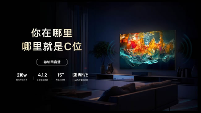 在听觉上,长虹AI TV拥有Hi WAVE交响声景,配合“卷轴回音壁”设计,让用户“声”临其境。它用216W超高峰值功率、4.1.2全维空间声场“让声音有力量”,再通过卷轴回音壁的45°黄金反射角,让声音迅速“到达”空间每一处,实现环绕澎湃的声场覆盖,人在哪里,哪里就是C位。