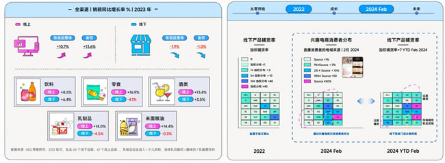 以某饮料品牌为例,其依托在内容电商平台投放品牌广告、与达人合作等玩法,为旗下果汁充分造势,吸引到用户关注。随后再以多元化营销内容逐步加深与消费者的链接,并将其精准引导至线下高效铺货区域,实现了全渠道增长,确立了市场地位。
