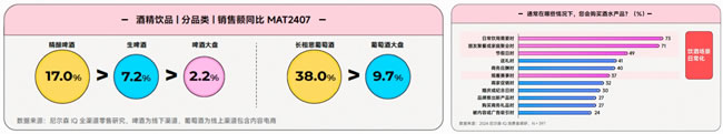 消费者对酒精饮品的需求高度集中在夏季聚餐及春节团聚等节点。内容电商在带动酒饮商品,尤其白酒品类的销量上,表现突出,呈现较高的增长。