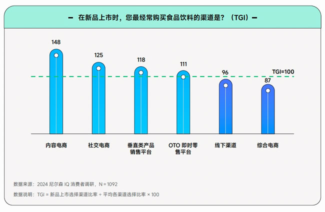 食品饮料行业品类众多,竞争激烈。新品常常是带动品牌增长的关键。白皮书显示,相比其他渠道,当食品饮料行业有新品上市时,也有更多的消费者会选择在内容电商平台购买新品。换言之,食品饮料行业商家可借助内容电商平台,为新品聚流造势,推动生意爆发。