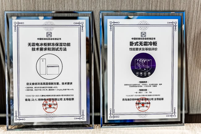 从行业标准出台的轨迹来看,海尔冷柜一直致力其中,积极主导标准的制定:2020年,主导《食材细胞级冷冻保鲜标准》,从冷冻深度、温度波动以及细胞冷冻冰晶面积等方面规范保鲜能力;2023年,先后主导《无霜电冰柜鲜冻保湿功能技术要求和测试方法》、《无霜保鲜卧式冷冻柜》两项标准,前者重新定义了食材冷冻高保湿方案,后者对风冷卧式柜冷冻保鲜等做出规范。在2024年,海尔冷柜又主导《卧式无霜冷柜性能要求及等级评价》标准,分级评价无霜冷柜性能,推动无霜冷柜食材健康规范发展。