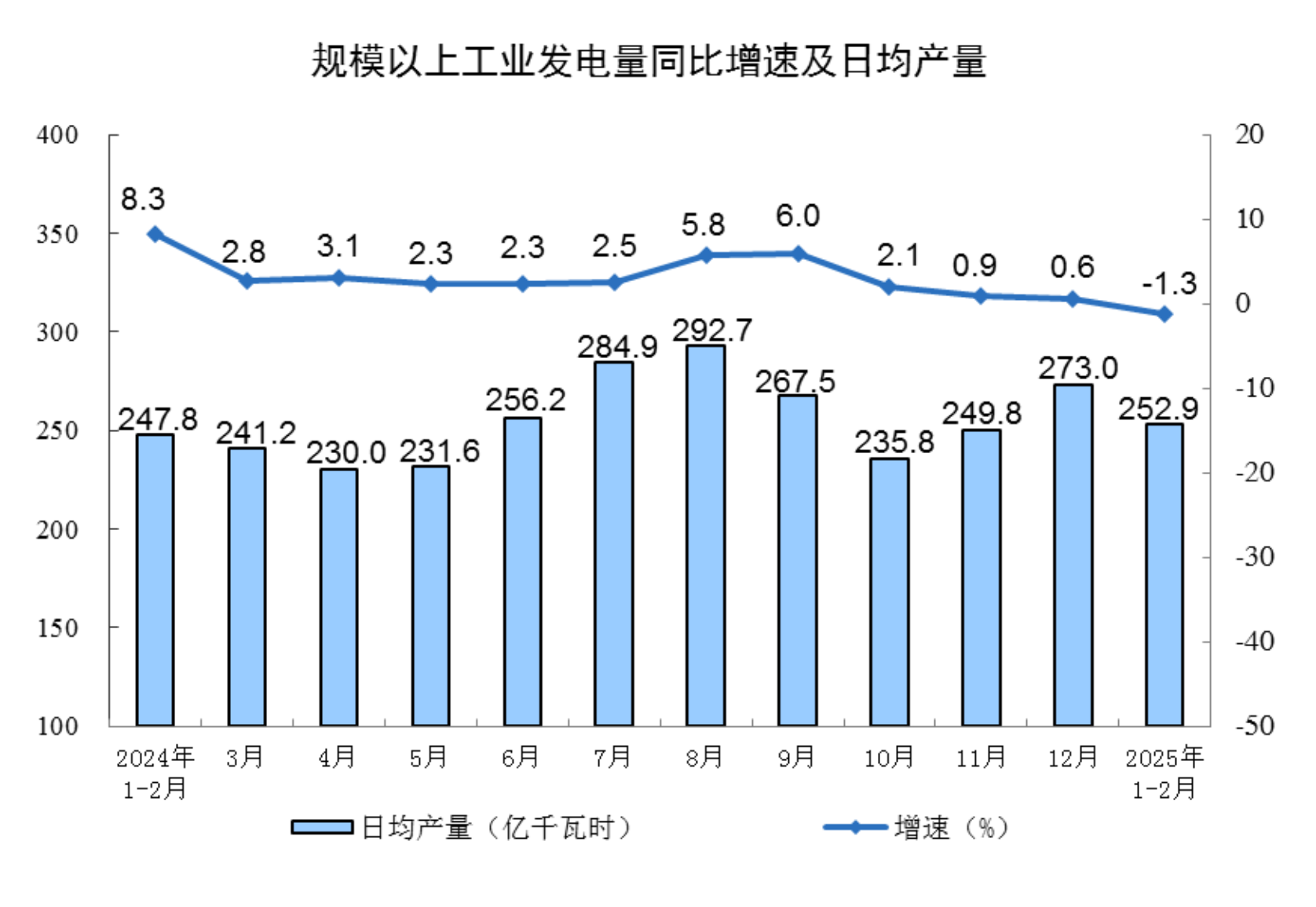 规模以上工业发电量(亿千瓦时) | 14921 | -1.3 |