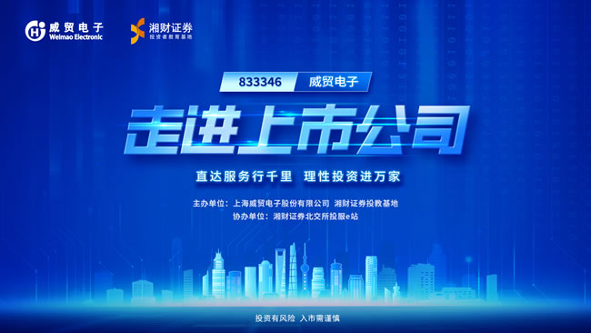 湘财证券投教基地特别策划“直达服务行千里 理性投资进万家” 活动 —— 走进北交所上市公司威贸电子(833346)。直播将零距离走进展厅、参观车间,参与投资者座谈交流会,助您穿透数据迷雾,洞见价值内核。