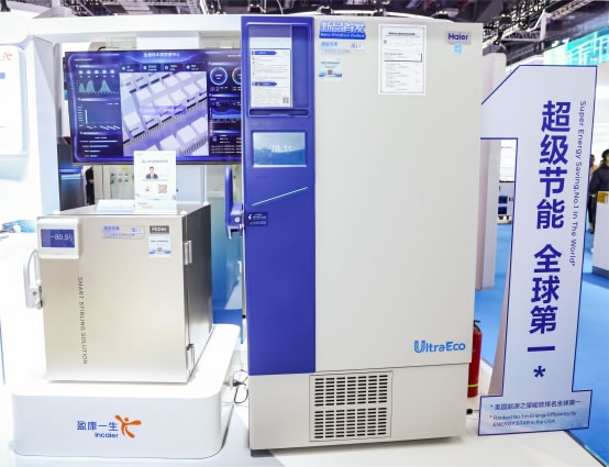 CMEF现场,海尔生物医疗还带来无极新一代超低温保存箱和超能系列超低温保存箱两大新品首发,前者实现-20~-86℃宽温域精准调控,并依托深绿技术优势,实现零碳无油制冷,日均耗电量仅3度。后者基于自研Eco-Drive超绿技术,箱内温度均匀性显著提升,每天耗电量仅4.16度,打破美国能源之星认证能耗记录,为用户带来超安全、超节能、超便捷的样本存储体验。此外,针对样本深低温存储需求,海尔生物医疗还全方位展示了智睿系列液氮储存系统。