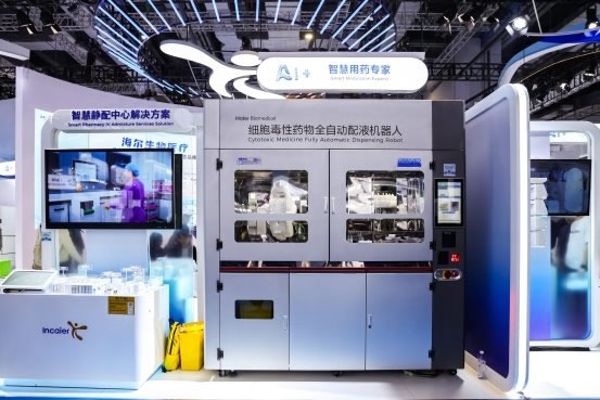 安全用药是保障患者健康的重要环节。在AI+智慧用药展区,海尔生物医疗借助AI技术全新升级院内用药生态系统,打造出AI+智慧用药方案,实现了药品“存转配发用”全流程数智化闭环管理,让配药效率及库存周转率大幅提升。现场,透过智慧静配中心和智慧门急诊药房等场景,可以更加直观地感受到AI+智慧用药的“安全”和“高效”。其中,在智慧静配中心,从输液出入库、贴签、发筐、针剂摆药、配液到输液分拣及配送等全流程、全场景都实现了自动化、智能化升级,且对患者用药信息的全流程也能可视化管理与追溯。在配液环节,现场展出的细胞毒性药物全自动配液机器人,可自动完成各种细胞毒性药物的溶解、抽吸和加药配置,实现配液零误差、药物零残留、医护零暴露、流程全追溯。在智慧门急诊药房,则实现了从存药、配药、补药到发药等全流程智能化管理,让患者取药“即到即取”。单剂量药品分包核对一体机,可自动精准分装药品,让药品分包0感染、患者给药0差错;芬太尼类药物专用智能柜,则是为麻精类药品专门打造的智能方案,可实现物联盘点精准管理,智守全时用药安全。