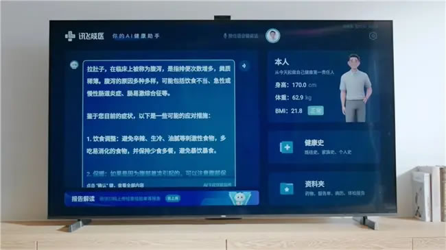 在实际使用中,老年人只需通过语音指令,即可轻松完成健康咨询。例如,用户可以通过电视进行在线问诊,与专业医生进行视频通话,获取个性化的健康建议。此外,电视还能解读体检报告,提供慢病管理方案,帮助老年人在家中实现全方位的健康管理。