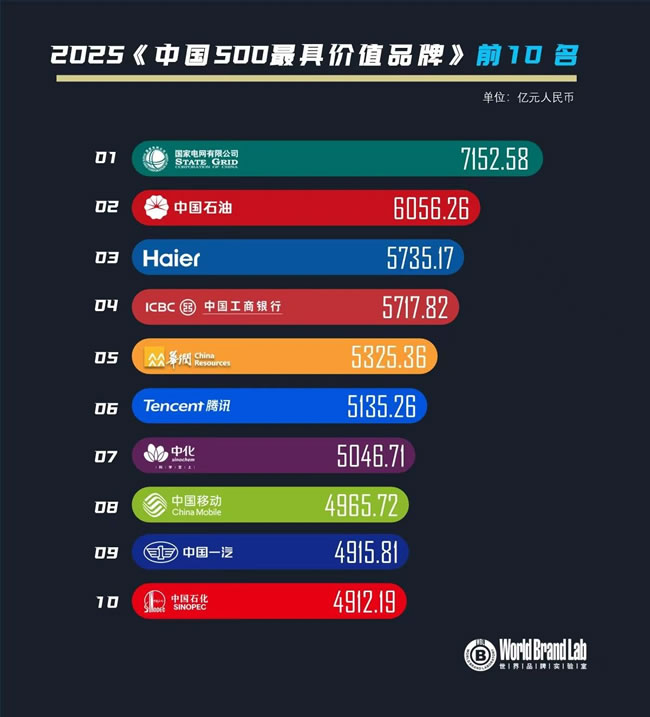 6月18日,由世界品牌实验室(World Brand Lab)主办的第22届“世界品牌大会”在北京举行,会上发布了2025年《中国500最具价值品牌》分析报告,国家电网、中国石油、海尔位居前三。其中,海尔已连续22年登上该榜单,品牌价值高达5735.17亿元,并入选“中国品牌数字技术提升品牌价值发展案例”,作为山东品牌高质量发展的标杆典范强势霸榜。
