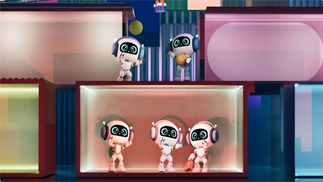 晚会应用裸眼3D视觉技术,结合创新舞台设计,将抽象数据转化为可感可视的城市图景与未来生活画卷,为观众带来沉浸式数据发布体验。首款数据发布虚拟人飞飞,升级出新分身,“飞飞家族”实现数据发布互动性、可视化,IP元素更丰富晚会文艺与视觉要素,提升晚会科技效果。