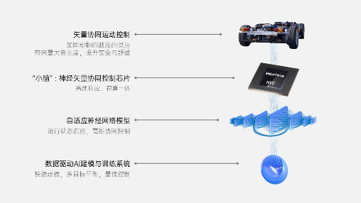 实现 VCC的核心,是神经矢量控制芯片(NVC)。MotorForce团队,基于数据驱动的AI技术,训练目标驱动、整体优化的高维度联合控制模型,并通过策略神经网络安全性测试和量化技术,提供可信、高效的控制芯片,保证NVC能够在车机端以高频率、低功耗运行,满足智能底盘控制的安全性目标。