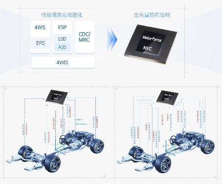 在紧急制动工况下,可以智能协同转向电机输出扭矩与四轮的制动力矩,在低附对开等危险工况下NVC/7能够大幅减少车辆驾驶控制难度、提升综合行驶安全性能。
